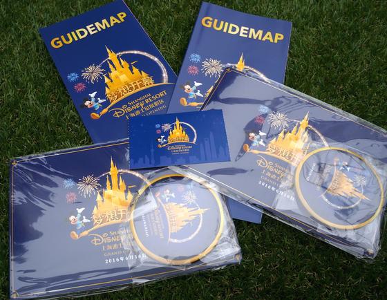 I first started my day at 10am at the park's turnstile, where they sent me to exchange my printed tickets for actual ones. Afterwards I was sent to a waiting zone; a place near the entrance where I was greeted by very happy cast members handing out a special package containing a grand opening button + postcard, a park map (mine in English) and a band with my waiting zone location written on it. It was there, on waiting zone 1B, that I waited for about two hours for the time when I could enter the park. The band not only showed the order in which my section would be allowed inside the park — it was a first-come, first-in basis — but also a way for anyone to go to the toilet or buy a snack and then come back in.