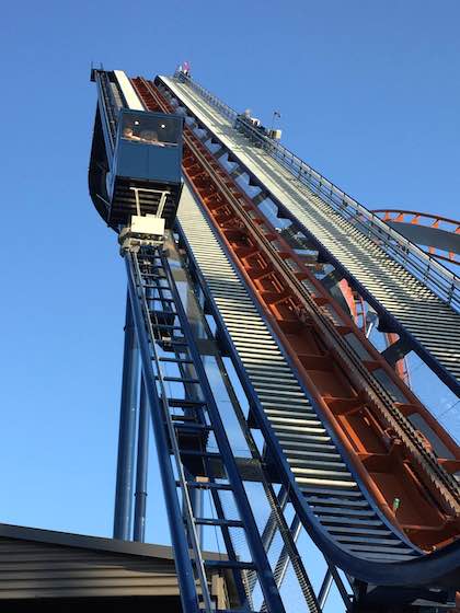 Once everyone had seen Cedar Point from the top of the coaster, it was our turn to be on the first ride of the day. Actually, they did run it a few times empty, then with some employee test riders, but soon we were taking our seats, getting secured and heading up the lift hill. I'm sure that everyone on that ride looked at the walkway we had just a short time walked on, then saw that we were heading over the edge for a 90-degree drop — or I should say "dive." Valravn is just as good every time you ride it as it was the first time — exciting, smooth, fast, and those seconds as you hang staring straight down are always memorable.