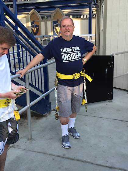 I was impressed at the safety measures taken while we were at the top of Valravn. We all had safety belts on, and we were never outside of the elevator without being carefully attached to a safety cable. The walkway at the top of Valravn, which makes a 90-degree turn to the right at the top of the lift hill, affords spectacular views of Cedar Point and the surrounding lake and bay, and fortunately the weather was as spectacular as the view. We were 234 feet above the Cedar Point midway, and if we had done nothing else on the tour the price would have been worth it. I think it was especially impressive for my friend Douglas — we had walked the park the night before and had ridden several rides, but seeing just how huge Cedar Point is and observing its unique location in Lake Erie must have been a thrill for him.