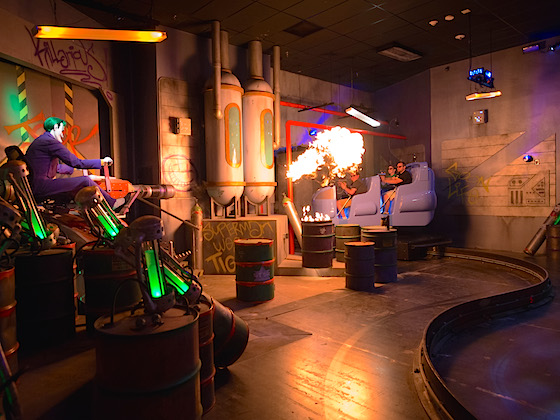 When I design a dark ride, I use whatever artistic medium works best to tell the story. For example, when we chase the Joker into STAR Labs and are attacked by him riding a Laughing Gas Cannon. That effect couldn’t have been done on a screen because I wanted Joker to actually touch the guests at that point, invading their personal space (with a blast of laughing gas, of course!). As good as our projected 3D is…it just can’t invade our space like something practical can.