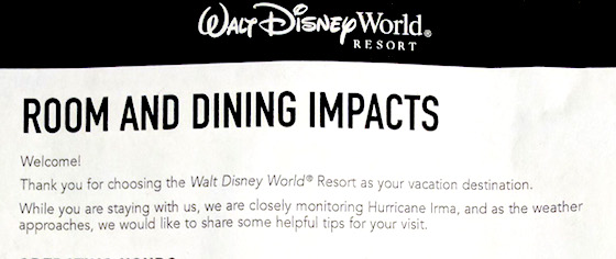 For what it's worth, I was there last year for Hurricane Matthew. We lucked out because it mostly missed Orlando. Disney was extremely accommodating