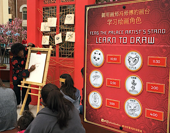 I wrapped my stay in the land with Feng the Palace Artist's Stand, an "Animation Academy"-style art lesson, where a palace apprentice talks you through the steps of drawing one of the Furious Five characters.