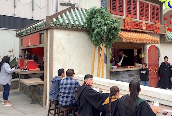 Sure, we've all seen festival food stands before, with their standard industrial look behind the counter and scores of people hovering over trash cans to eat. But Universal has provided several tables, a counter, and abundant chairs for diners here. And it's made the effort to decorate the stand behind the counter, as well as out front.