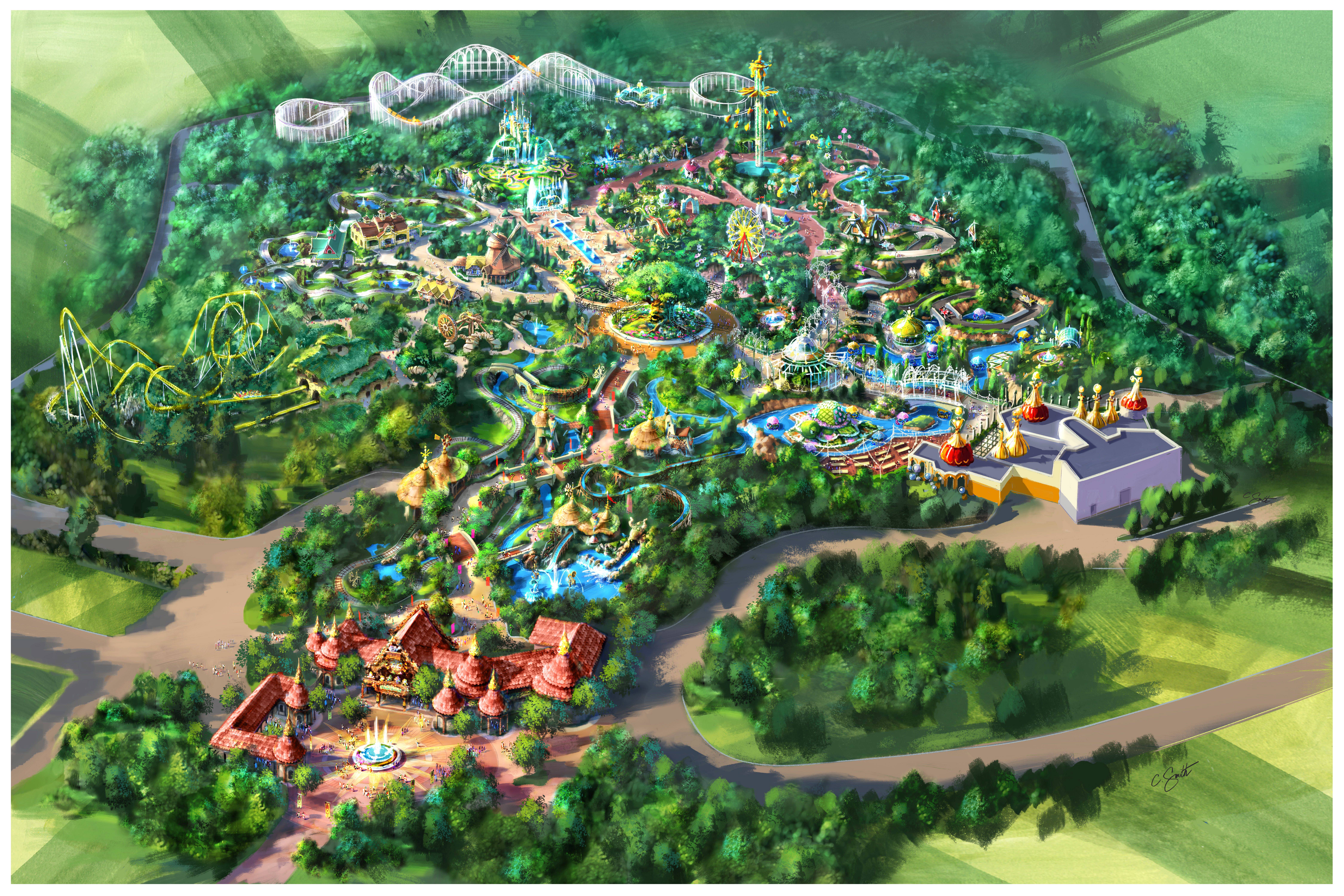 Developed with the working name "Lotte's Magic Forest," the new park will include six nature-themed lands and more than a dozen family attractions in its first phase, anchored by two roller coaster experiences, according to a press release issued by the park's creative team at California's Legacy | GGE. The park's first phase will open sometime in mid-2021 and occupy about 25 acres. (For comparison, that's about half the size of Universal Studios Singapore, the smallest of the Disney/Universal theme parks.)