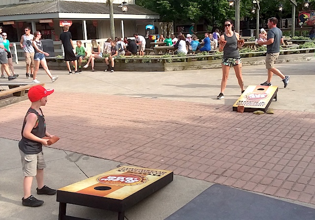 There is more to the Brew and BBQ than just eating and drinking, and perhaps this is where the Hootenanny comes in. You don’t need a ticket to enter the area - in fact, you can’t get to Maverick or Steel Vengeance without entering it, and the Cedar Point and Lake Erie Railroad Station stands at one end of the site. Lots of visitors who weren’t eating or drinking were enjoying the entertainment being presented in the Palace Theatre, the Gossip Gulch Stage, and throughout the site. Lusty Lil’s French Revue and the TomFooleries presented fun, light-hearted country music with some audience participation thrown in, and there even was a cornhole game set up - and a line of guests waiting to play it.