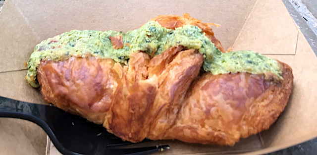 France — Croissant aux Escargots: Escargot Croissant with Garlic and Parsley ($5.75) If you never had Escargot, a.k.a. snails, this is the place to try it. I call Escargot oysters of the land because besides being coming from a shell, they are a little chewy and absorb whatever flavor they are cooked in. This happens to be the case when the Escargots are cooked in delicious garlic butter sauce and stuffed inside a super soft and flaky croissant. C'est Magnifique!