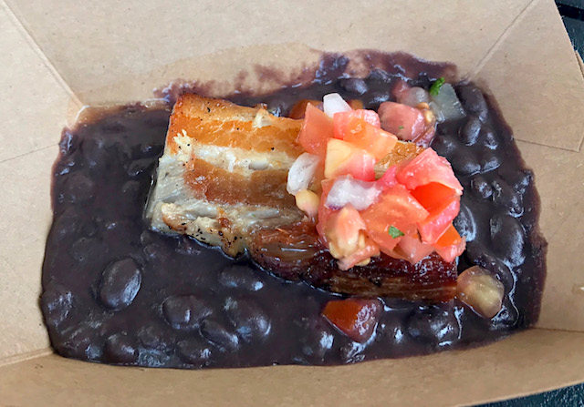 Brazil — Crispy Pork Belly with Black Beans, Tomato and Onions (Gluten Free, $5.75) A fan favorite, this dish returns unchanged from last year because it was perfect to begin with. I mean, who doesn't love a niece piece of crispy, perfectly rendered pork belly? Adding in the tomatoes and onions provide a fresh flavor contrast to the very savory pork.