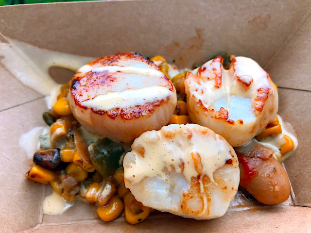 Coastal Eats — Seared Scallops with Roasted Corn, Butterbean Succotash and Chili-chipotle Butter Sauce ($6) A great new addition to the menu this year is a nicely portioned dish featuring sea scallops. The scallops are not big, but for $6, you get three nicely sized fresh tasting scallops with a scrumptious sauce.