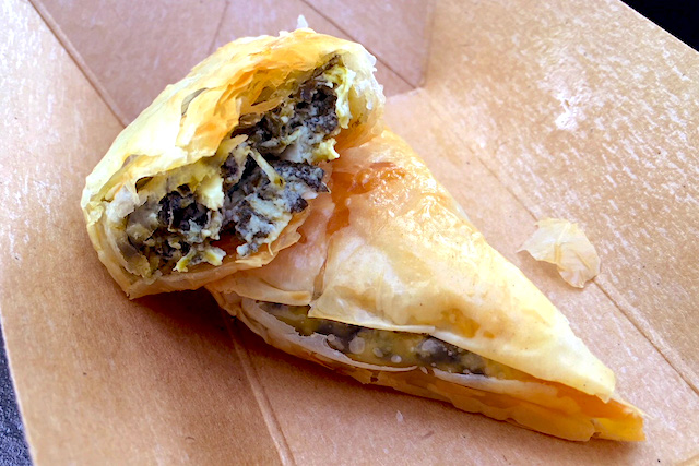 Greece — Spanakopita: Greek Spinach Pie (Vegan, $4.50) Vegans can rejoice again with this absolutely great tasting dish. Spinach baked in flaky phyllo dough is oh so good. By the way, there are about twenty-eight vegan dishes available at the Festival.