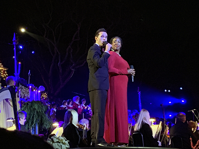I was there when the guest Speaker was James Earl Jones, they had a live Christmas Tree,and choirs of schools, and churches, it was so beautiful, and every guest had a candle and we sang several Christmas songs and the lights were turned off, then James Earl Jones read the Christmas Story, there was not a dry eye there and everyone had the respect to not talk, it was amazing.