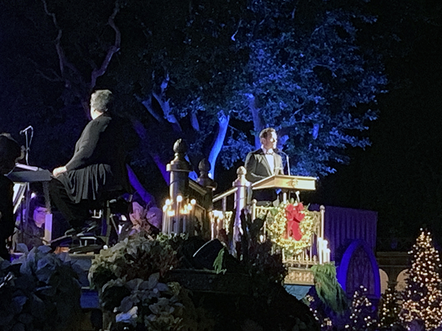 The identity of Disneyland's celebrity guest narrator is often the big mystery leading up to the show, as Disneyland does nothing to promote its Candlelight in advance of the performance, given its invitation-only nature and extremely limited opportunities for public viewing. So the introduction of the star of Guardians of the Galaxy brought a roar of surprise and approval from the crowd listening on Main Street.