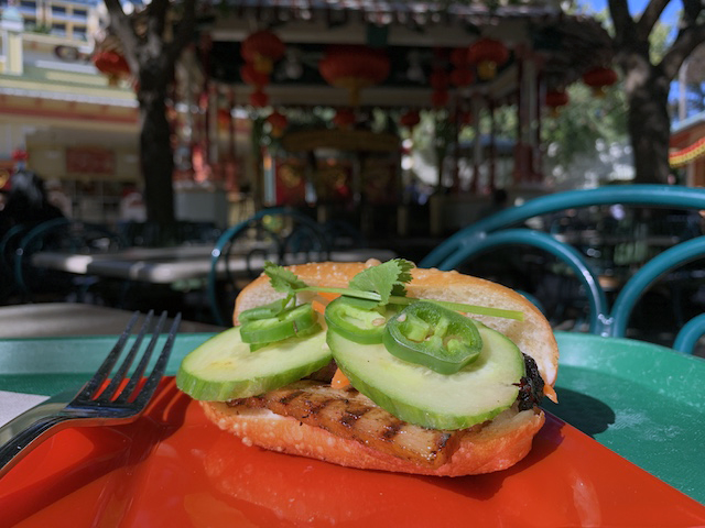 The best thing I’ve had in the park in a while, the classic Vietnamese sandwich features grilled pork belly, pickled daikon and carrots, and cucumbers, garnished with cilantro and jalapeños, served atop a perfectly baked demi baguette.