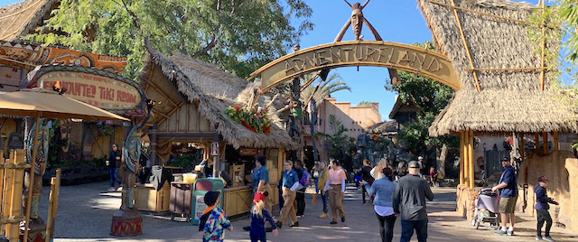 We first told you in January about this project, which is intended to increase guest capacity through one of the two main entryways to the west side of the park, where Galaxy's Edge is located. Disneyland is replacing the former Adventureland sign and has put up a smaller sign as a temporary replacement.