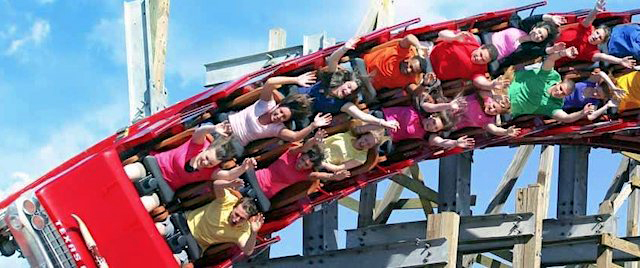 Then let's enjoy the bliss of a wild ride through the woods on Bolliger & Mabillard's Thunderbird, from Holiday World in Santa Claus, Indiana.
