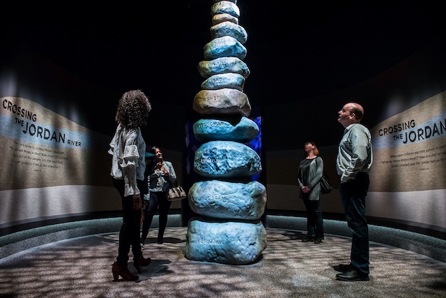 The exhibit had plenty of space — with 15,000 square feet, but it was go within a historic building with columns every 20 feet. That led the team at BRC Imagination Arts to create five theaters and 10 walk-through spaces for the exhibit, which tells the story of the Torah through show scenes straight out of a theme park ride. Small groups are pulsed through the exhibit to help keep the feeling intimate and personal.