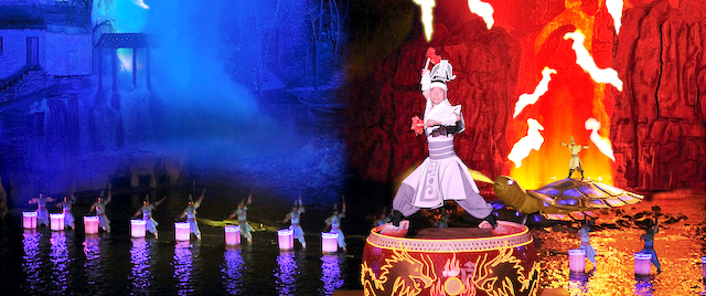 The show is one of several attractions in the area, which were developed to support the restoration of thousands of acres of deforestation and quarrying, a project that included moving 60 million cubic feet of fill and planting more than 11 million trees. The result here is a one-hour production featuring hundreds of actors, dancers, singers, and acrobats, who bring to life legends and stories from ancient China, highlighted by an erupting volcano, flying dragons and a 5,000-ton waterfall.