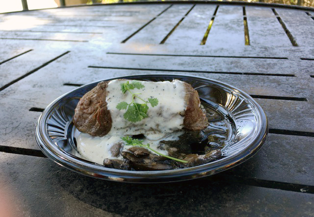 Taste of Epcot International Food & Wine Festival wraps this weekend, in advance of Taste of Festival of the Holidays starting on November 29. So there was still time for another Le Cellier Wild Mushroom Beef Filet Mignon with Truffle-Butter Sauce [$8.50] in the Canada pavilion.