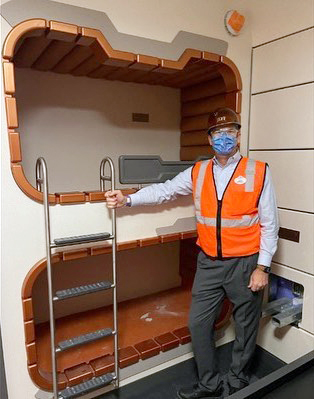 Here is Walt Disney World President Jeff Vahle with one of the bunks in the hotel's cabins.