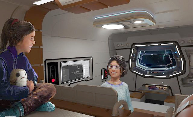 The experience is designed to make visitors feel like they are traveling in space, from the moment they enter the resort's front door and take a shuttle up to the starcruiser to the moment they depart. Interactive adventures on the starcruiser will be available, effectively making a trip here into a live-action role-playing experience for those who wish to take it to that level. To preserve the illusion of space travel, all the "windows" in the hotel will be animated screens, much like the one that Vahle and Disney Parks Chairman Josh D'Amaro posed with here.