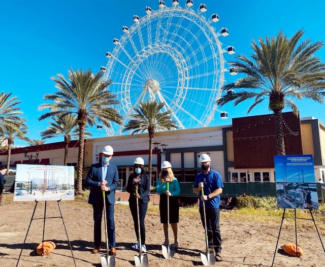 ICON Park president and CEO Chris Jaskiewicz joined Orange County Commissioner Victoria Siplin, International Drive Resort Area Chamber of Commerce President Maria Triscari and Ritchie Armstrong, the owner of the two new attractions, (left to right, below) for the groundbreaking.