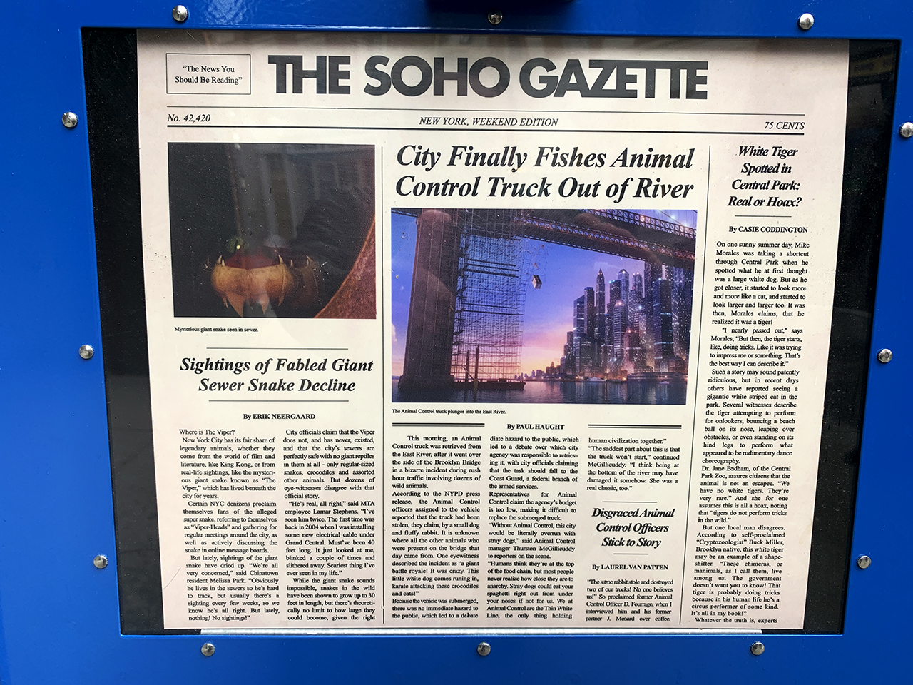 Don't skip the newspaper boxes next to the station. There are some fun Easter eggs in the copy here.