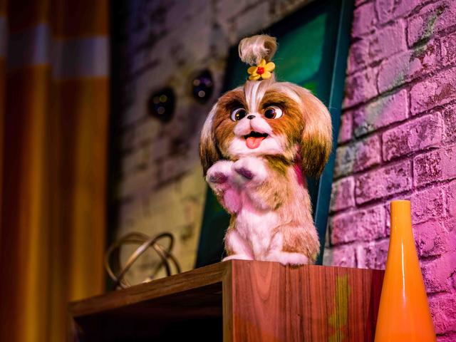 The queue is a self-guided tour through the pets' apartments, where we see animantronics of many of the pets, up close.