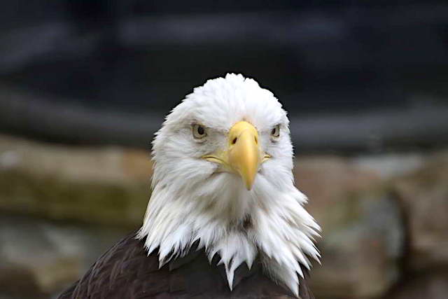 Owls and falcons, along with eagles, were presented to the audience in an interesting and informative way, and you could tell that these unreleasable birds were being well cared for. Eagle Mountain Sanctuary is a large fenced-in wooden hillside with what looked like dozens of bald eagles nesting in the hillside, and is directly adjacent to the Wings of America Theatre.
