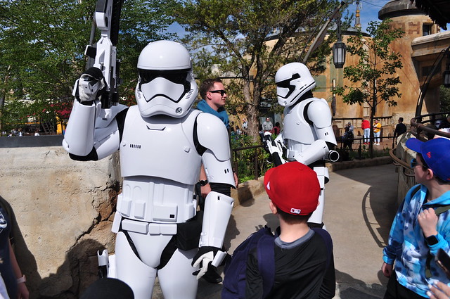 The biggest issue for me was that Disney was willing to sell clothes, accessories, and other items for guests to live out their Star Wars fantasies but discouraged them from actually using them in the land. Guests can still cosplay to a certain extent within Galaxy’s Edge (aka "Disney-bounding"), but it falls short of what is promised when Disney advertised the land as a place where guests can live out their own Star Wars story. Also, character and cast member interactions within the land to make the guest experience more immersive were all over the place and have been even further diminished given pandemic restrictions. Guests could spot Rey, Chewie, Vi Moradi, Kylo Ren, and Stormtroopers throughout the land, but the heroes sprinted down the walkways scarcely stopping for a chat or "face scan" while the villains spent their time interrogating guests with very little variability in their interactions.