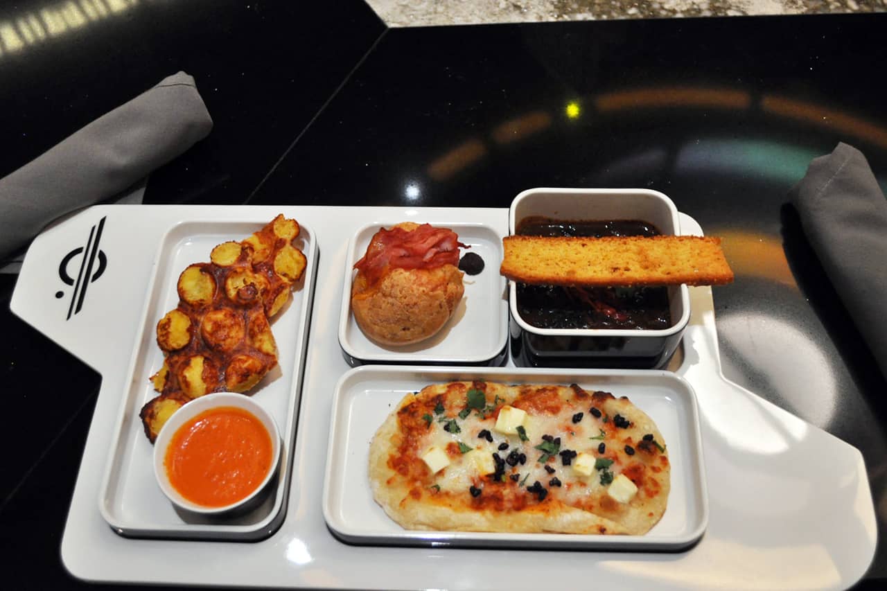 In addition to everything served in the dining room and Atrium, there were also dishes served in the Sublight Lounge. Guests could order from a diverse menu of small plates to accompany their drinks.