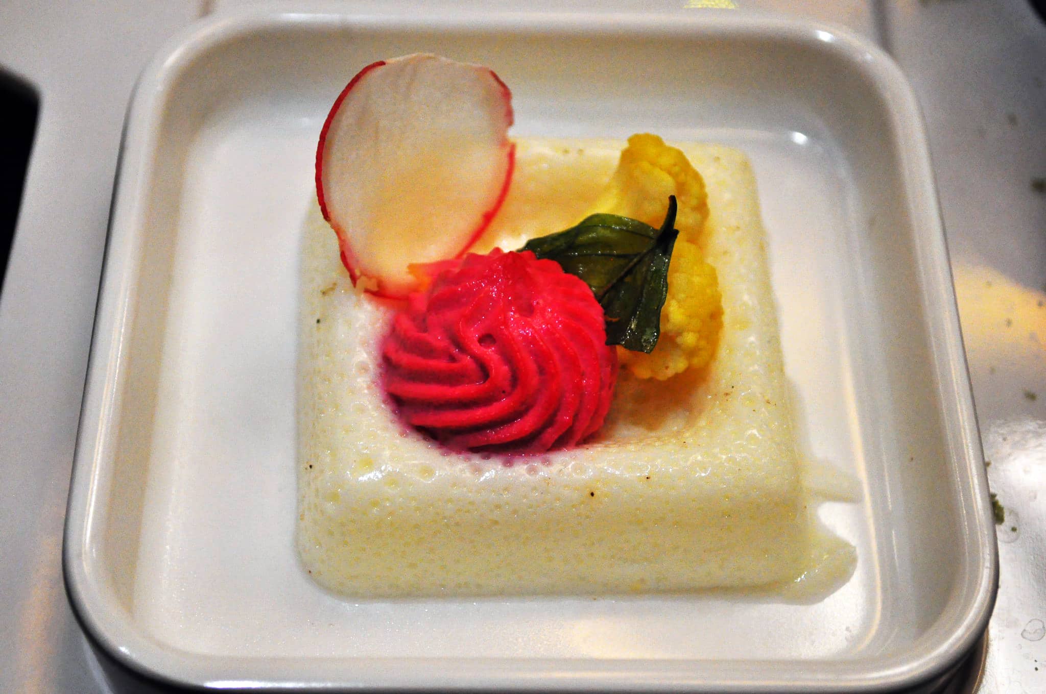 I was not a fan of this dish. It was probably my least favorite of the entire trip. I don’t necessarily mind radish (used as a garnish), but the heaping dollop of red horseradish sauce in the center of the egg white was not to my liking. This type of horseradish is usually used to balance rich proteins and thick sauces, but there just isn’t enough flavor in the egg to counter the bitterness.