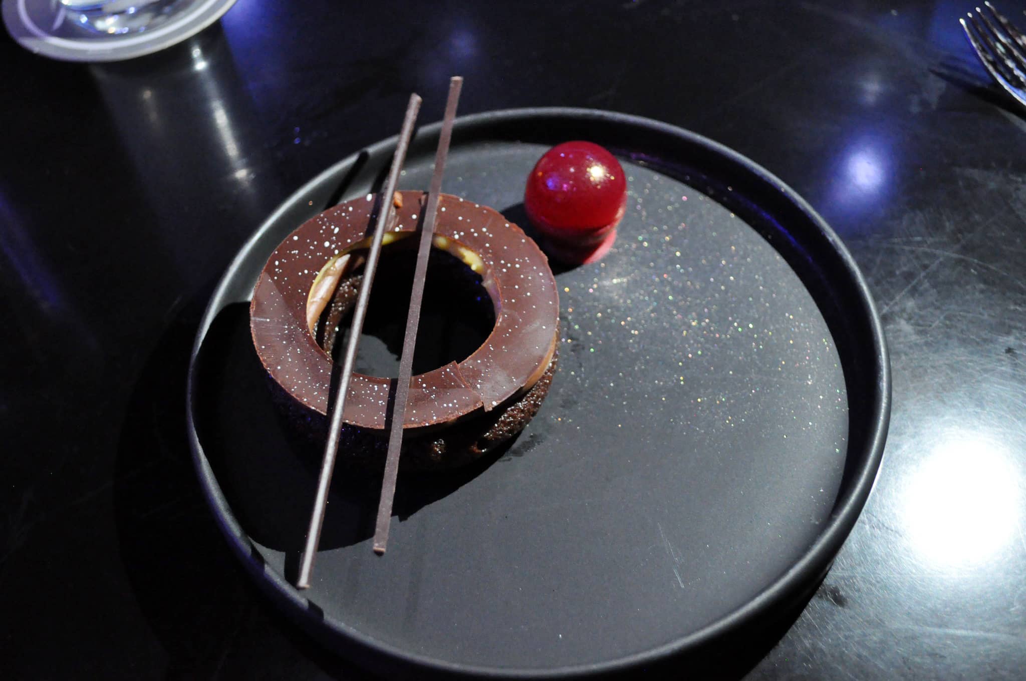 This dish reappeared here, so I grabbed a sample with its interesting floral garnish. This tasted pretty much as you would expect though the chocolate is not as dominating as I anticipated.