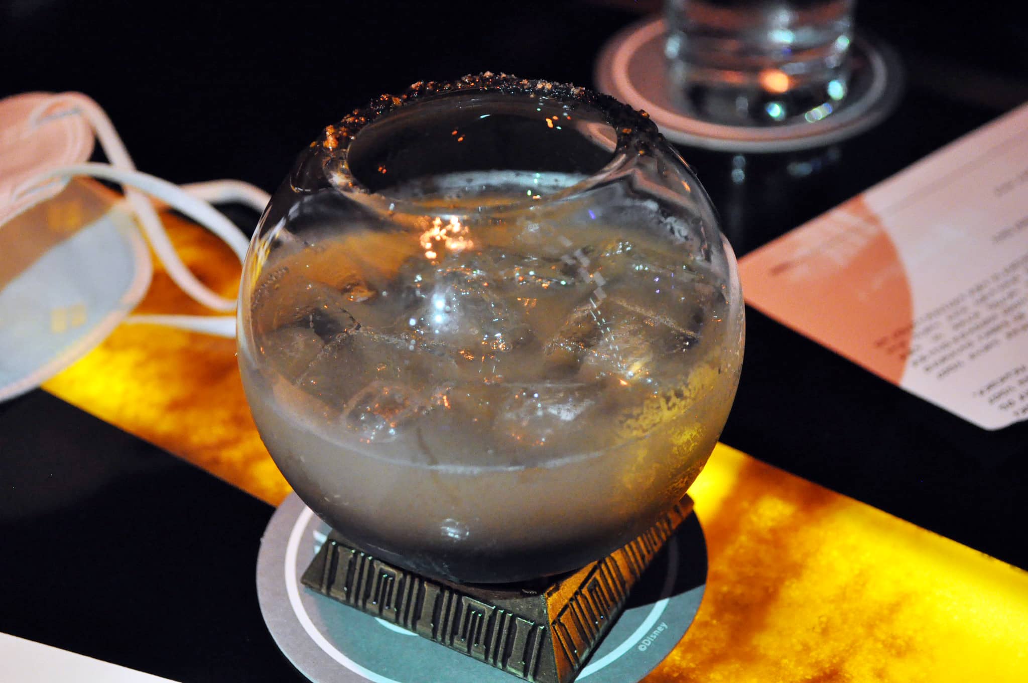 This exotic margarita-style drink was a real winner. We ended up ordering this in a souvenir glass, which includes an exclusive Chandrilla Star Lines stand. The base drink is a more tart version of a standard margarita, but the glass is rimmed with a smokey black salt and spice mixture, and accompanying the drink is a test tube of “lava extract” that allows you to increase the heat level. This red-tinted liquid really kicked the drink up a notch and made the liquid spicy without adversely impacting the flavor of the base mix.