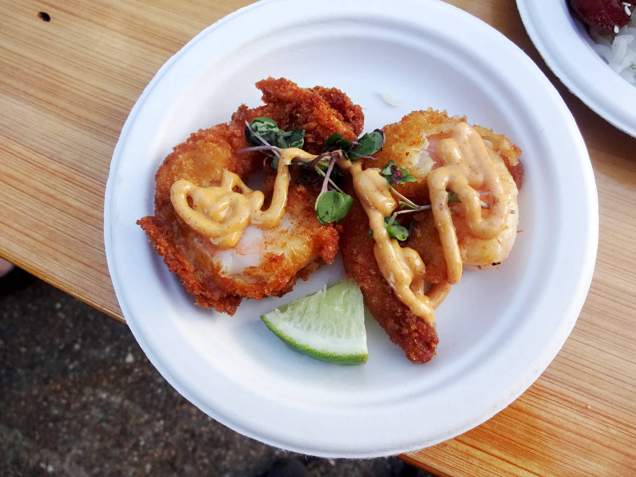 Our first time around the park we grabbed the Spicy Tuna Poke Bowl. Zach is a massive fan of poke, and we knew this dish was good when we had to practically pry the bowl away to taste a single lonely cube of tuna before it disappeared. The chili aioli drizzled on top adds a good kick to the melt-in-your-mouth tuna, and the marinaded seaweed, pickled onions, and cucumbers added a nice contrast to the savory fish.