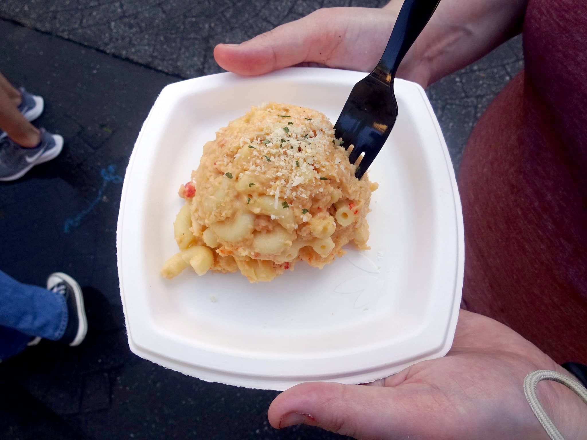 We decided to go top shelf here with the Lobster White Cheddar Kraft Mac N Cheese. We probably should have skipped this dish, because it wasn’t that great. Typically, lobster mac and cheese has chunks of lobster placed on top of a bed of cheesy macaroni, but here it was a scoop of a cafeteria-style casserole with the lobster already mixed in and some dry bread crumbs sprinkled on top. There was a decent amount of lobster in the serving for its price, and there was a strong lobster flavor throughout through the addition of lobster bisque to the mixture. However, the texture wasn’t that great, and the presentation left a lot to be desired.