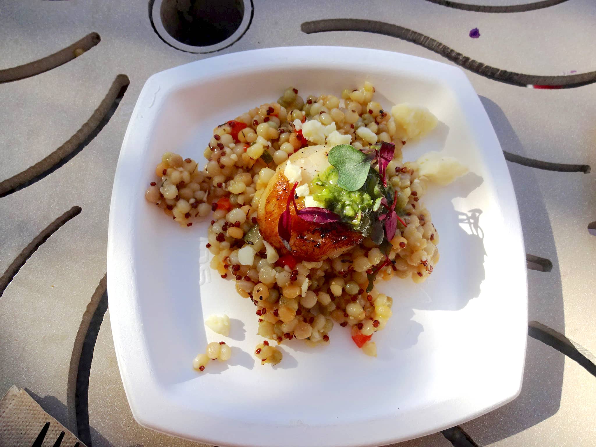 The Grilled Lamb Chop was the clear item of choice from this kiosk. The lamb here was a superior cut to that of the ribs, and the rub applied was a nice blend of Italian and Greek spices. The only downside to this dish was the boring cubed potatoes served alongside the classy lamb. I would have rather the chop served by itself or maybe a chunk of feta or couscous, since the potatoes didn’t add a thing to this dish.