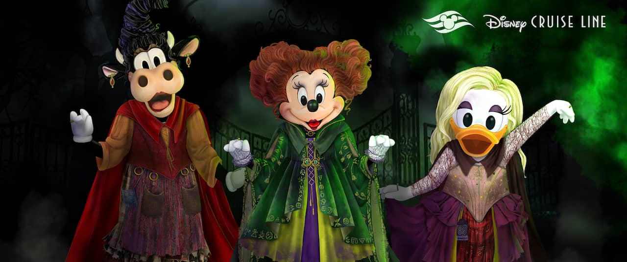 Finally, on board the Disney Cruise Line's Disney Wish, Minnie, Daisy, and Clarabelle will appear as Sanderson Sisters from "Hocus Pocus."