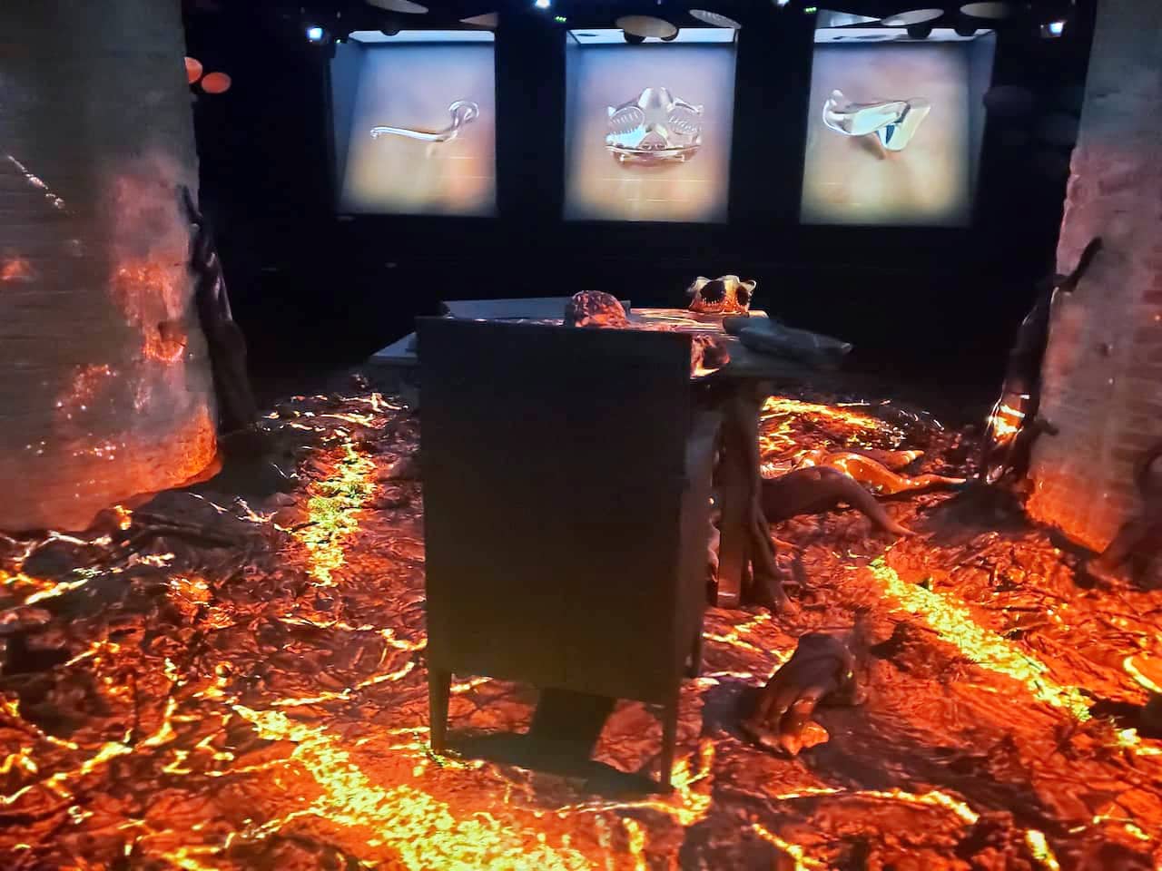 After presenting our tickets, we were welcomed into the “Gaudí Dome,” home to a pre-show experience entitled “Inspiration of Gaudí: The Origin of Genius.” Passing through a doorway onto a moving walkway, we slowly glided past a cast figure of a boy Gaudí drawing at a desk. Suddenly, the music strengthened, and lava seemed to billow from the floor. As a sickly child, nature was often the artist’s only companion, and the one thousand Panasonic screens above and around us illuminated with the colors and images of air, water, fire and earth that would stimulate Gaudí’s lifelong portfolio of work, including the rooms we were about to see.