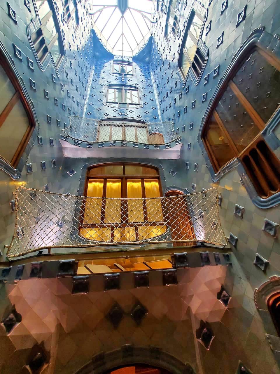 Leaving the Noble Floor, we encountered the building’s most spectacular feature – the five-story Patio of Lights. At this point, the AR component switched off, purposely leaving us to marvel at the blue-hued tile, as well as the illusory windows that grew smaller as we ascended, making it appear that the building was stretching with every upward step. The audio guide explained the patio’s purpose – to distribute air and light throughout the house – but no explanation was necessary for what inspired this atrium: the waves of the Mediterranean Sea could be seen in every diamond-shaped sliver of ceramic. We only wish we could have visited later in the evening, when projections transform the Patio of Lights into a glowing azure waterfall.