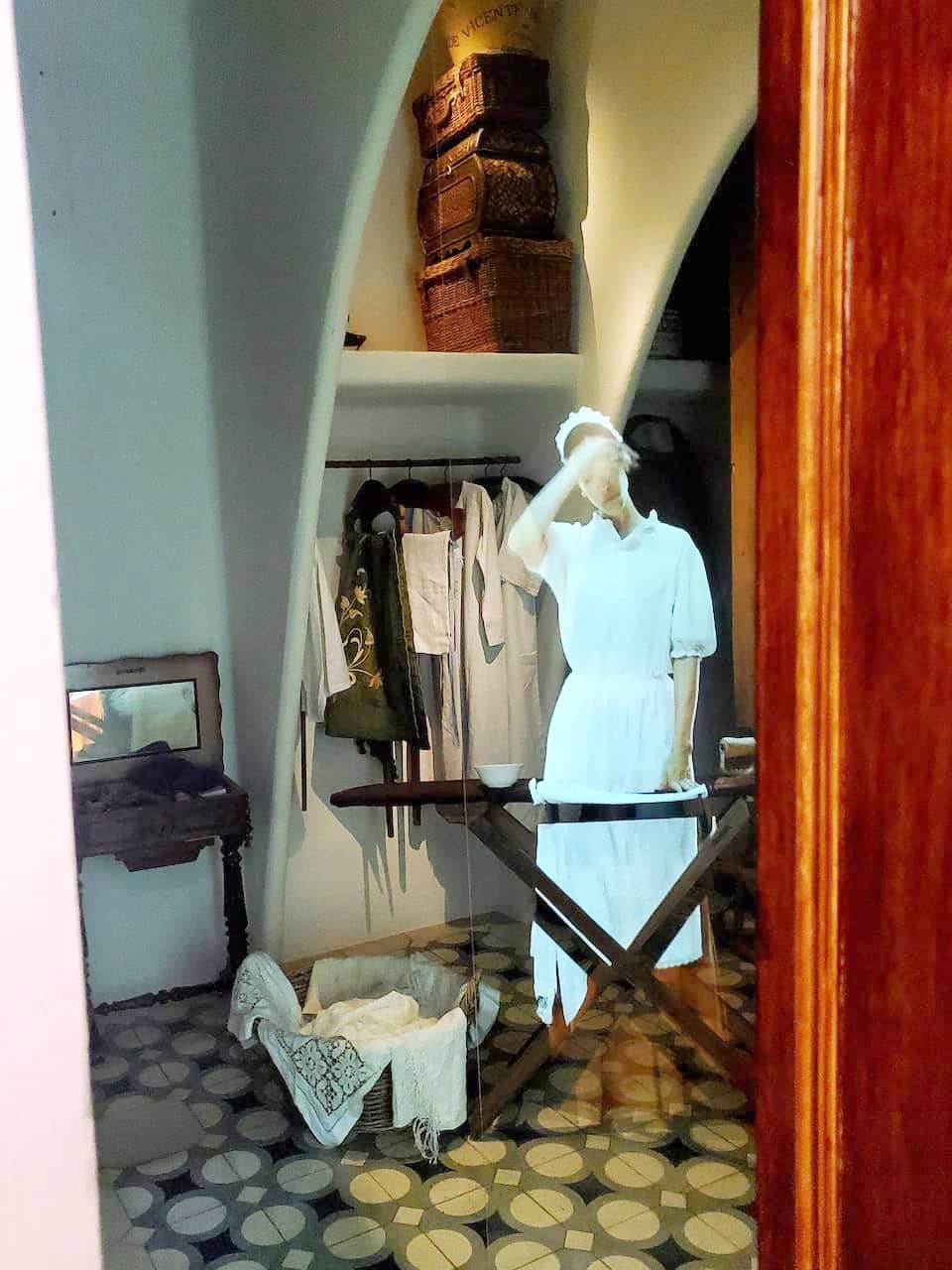 As we completed our ascent, we reached the house’s terrace, where we were encouraged to set our technological devices aside, make the most of the open-air bar, and enjoy the house’s analog splendor – from its colorful mosaics to its undulating chimneys. We were also treated to a commanding view, as the wavy facades of the Eixample stretched out before us. Leaving this elegant rooftop retreat, our descent back through the house began, but not without a walk through the house’s curvilinear loft, where we met a few of Casa Batlló’s original housekeepers via Pepper’s Ghost projections.