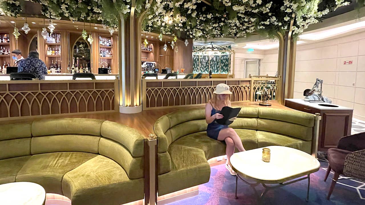 For morning lattes and coffee, the family's pick was the Cove Café, back in the adults-only section at the rear and top of the ship. You can find upcharge espresso drinks at most of Disney's lounges, but the Cove Café was the one place on the Wish that felt most like a trusted neighborhood coffee place, where you want to hang out as you enjoy your morning (or afternoon) fuel.