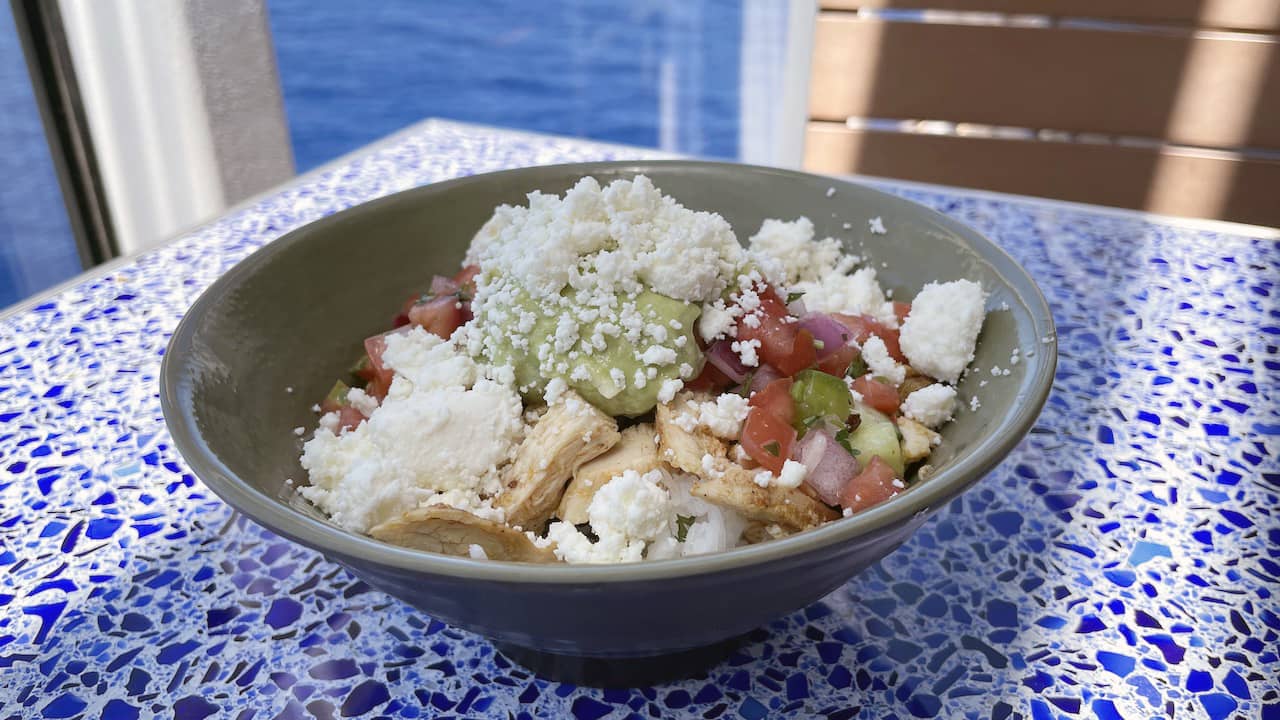 At the other end of Deck 11 - literally and figuratively - lies Mickey and Friends Festival of Foods. That this food court at the end of the pool deck shares a name with the parking garage at Disneyland should have been my first red flag. You will find five food stalls here: Mickey’s Smokestack Barbecue, Donald’s Cantina, Daisy’s Pizza Pies, Goofy’s Grill, and Sweet Minnie’s Ice Cream (soft serve). A Disney source said that the first two were new to the Wish, so those were the ones we tried for lunch on our day at sea.