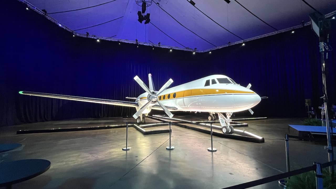 We started the evening in the Anaheim Convention Center's arena, where Walt's recently restored Grumman Gulfstream I plane stands on display.
