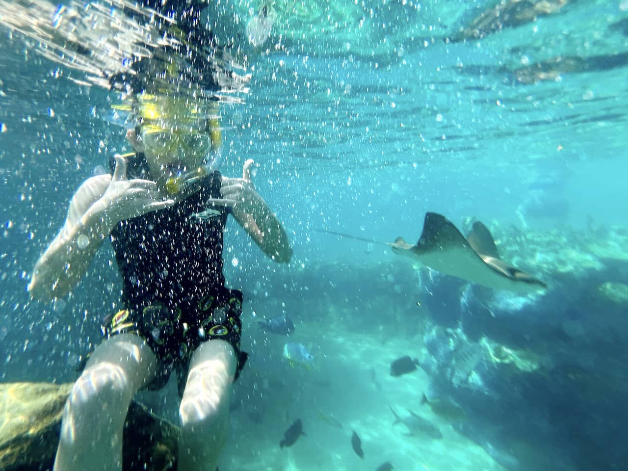 Having just recently snorkeled in Hawaii, I feel the Grand Reef captures the essence of an excellent ocean snorkeling experience, and the ability to explore at your leisure made it superior to my previous artificial snorkeling experience at Typhoon Lagoon (the now-closed Shark Reef experience). The variety of fish in the habitat is incredible, and the rays are so accustomed to guests swimming with them that you can swim right up to them.