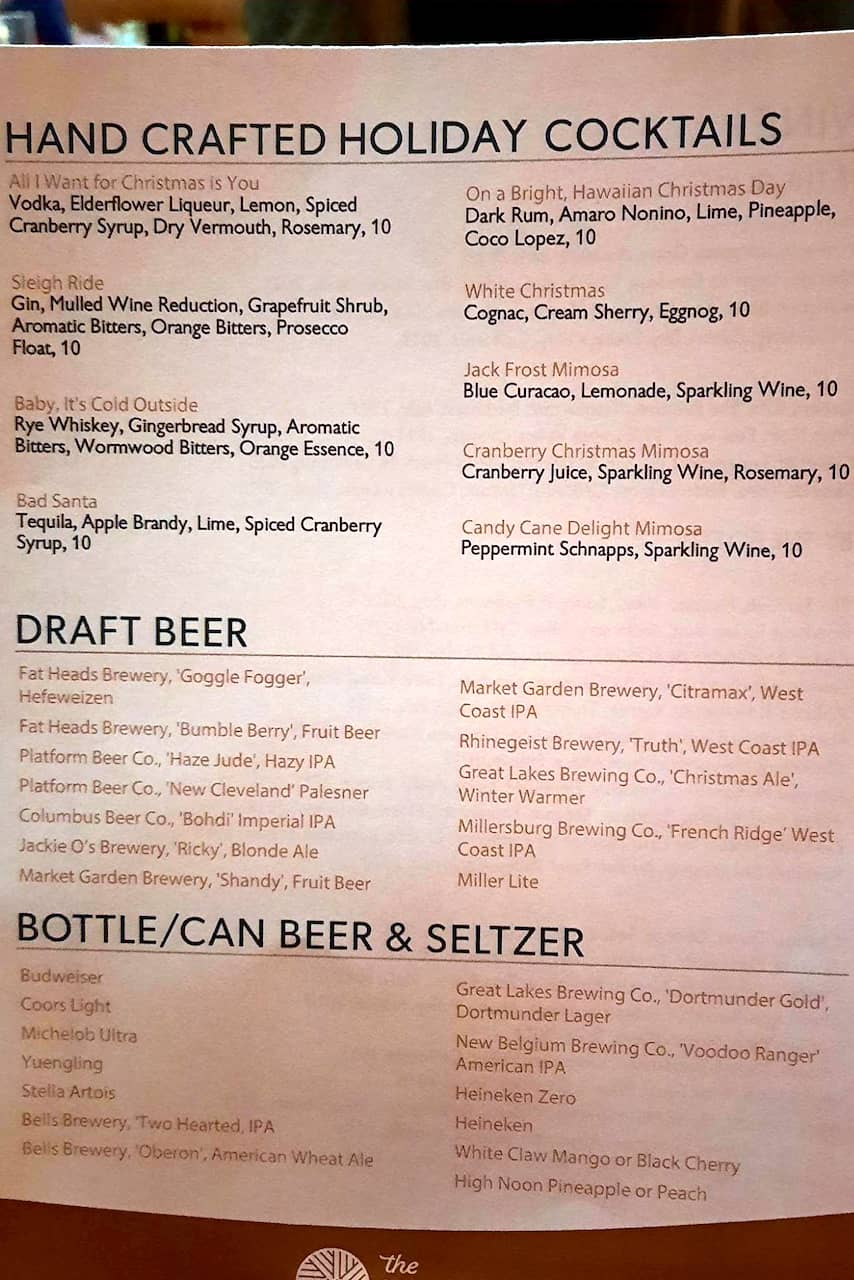 We had dinner in the resort’s main restaurant, The Miller’s Table. The food was wonderful, even though it was quite pricy (a great special-event meal), and the service was excellent. They had a special holiday-themed drinks menu. I only tried one, and it was not my favorite.