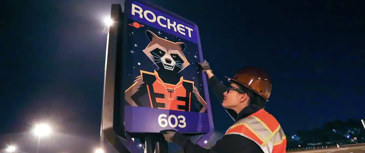 Gone are the old parking section names Journey, Discover, Amaze, Create, Explore, Imagine, and Wonder. Those sections, respectively, now are called Hei Hei, Crush, Moana, and Dory on the "Earth" side, and Rocket, Wall-E, and Gamora on the "Space" side.