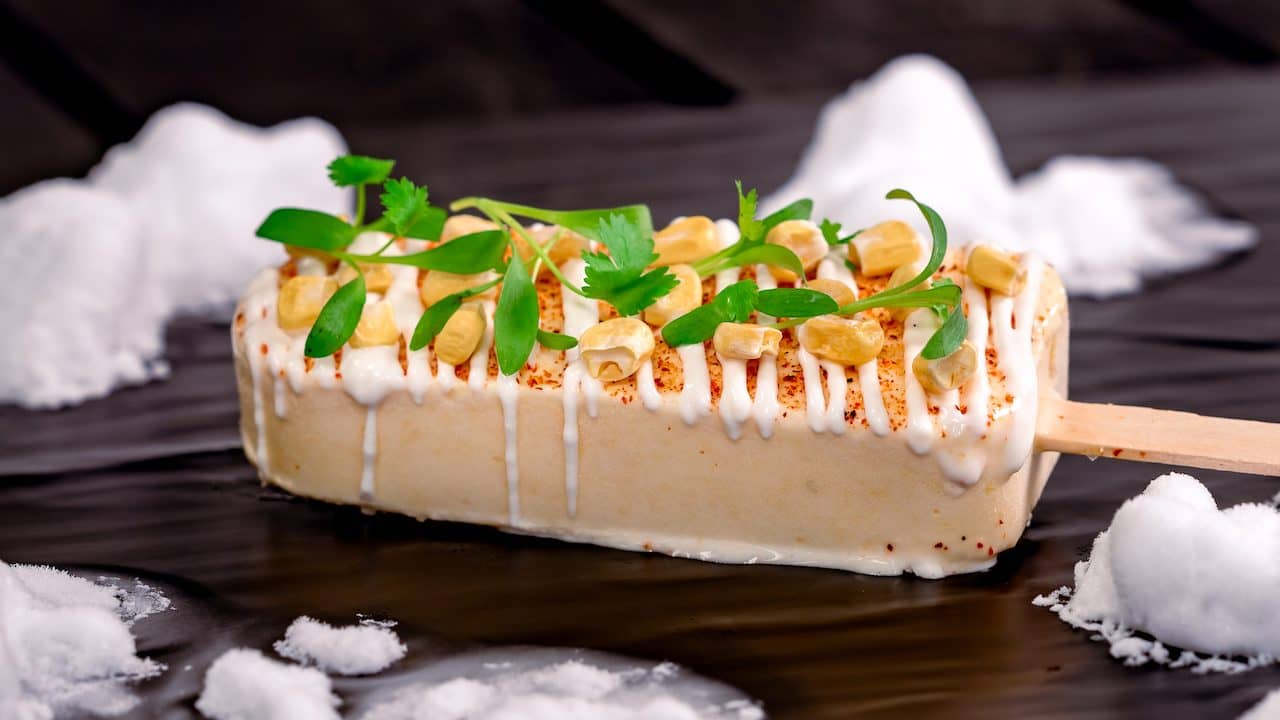 New items this year include an elote paleta [$6] - sweet corn paleta with parm crema, chile-lime seasoning, corn crunch and cilantro - at Golden Dreams,