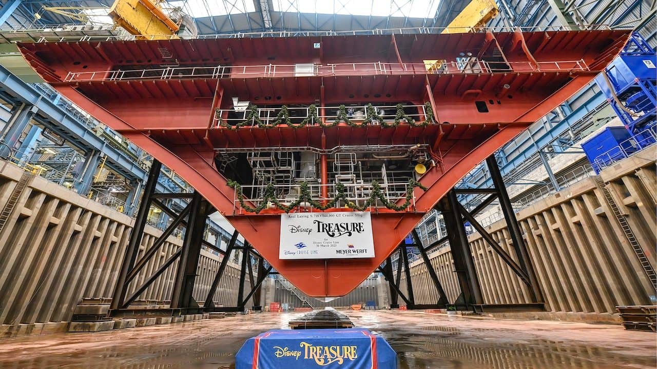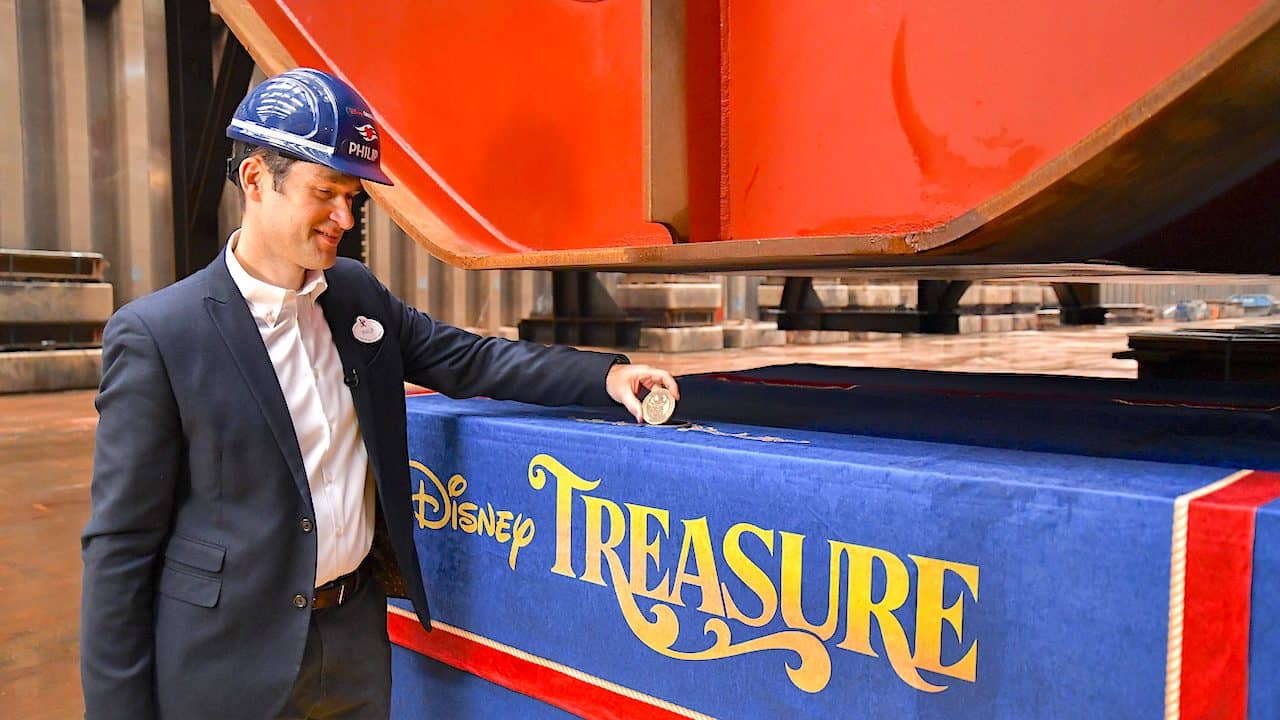 Disney and shipyard executives gathered for a keel laying ceremony for the Disney Treasure, which is expected to set sail in 2024. The Disney Treasure announcement is included in our D23 Expo round-up from last year: New Rides and Old Favorites Coming to Disneyland, Disney World