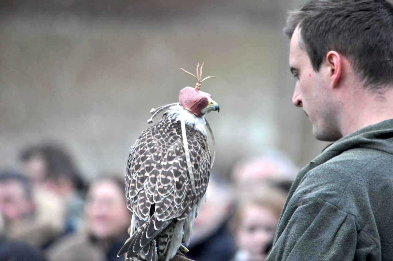The other main show we saw at Warwick Castle was called The Falconer’s Quest. We’ve seen dozens of bird shows at theme parks around North America, including ones that exclusively feature birds of prey (Dollywood’s Wings of America). Falconer’s Quest takes place in the same field area where the trebuchet demonstration takes place, with the creek providing a convenient target for dive-bombing maneuvers. The Falconer’s Quest features numerous birds of prey (owls, hawks, falcons, eagles, and condors) that fly over, around, and through the audience.