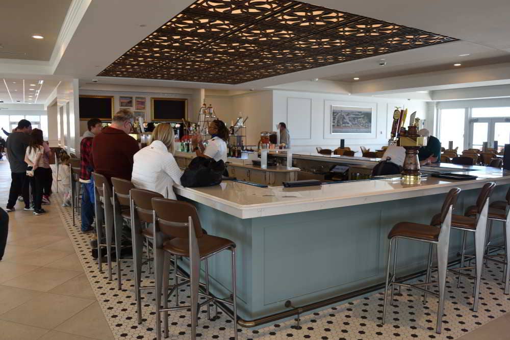 Along with soft drinks and water, adult and non-adult beverages such as frozen sangria, margaritas, pina coladas, and frozen lemonades are available in the large bar on the second floor.