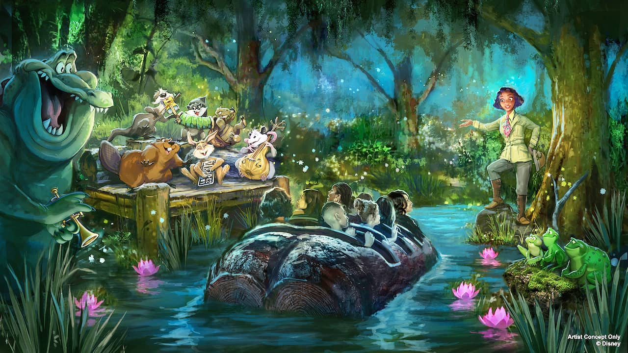 Tiana’s Bayou Adventure will present a new storyline which picks up where Disney's "The Princess and the Frog" left off. Princess Tiana, Naveen and jazz-loving alligator Louis will set out on an adventure through the bayou to find a "missing ingredient" as they prepare to host a one-of-a-kind celebration during Mardi Gras season.
